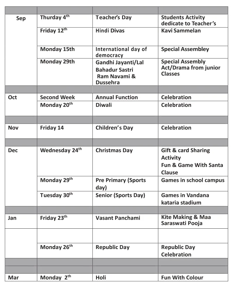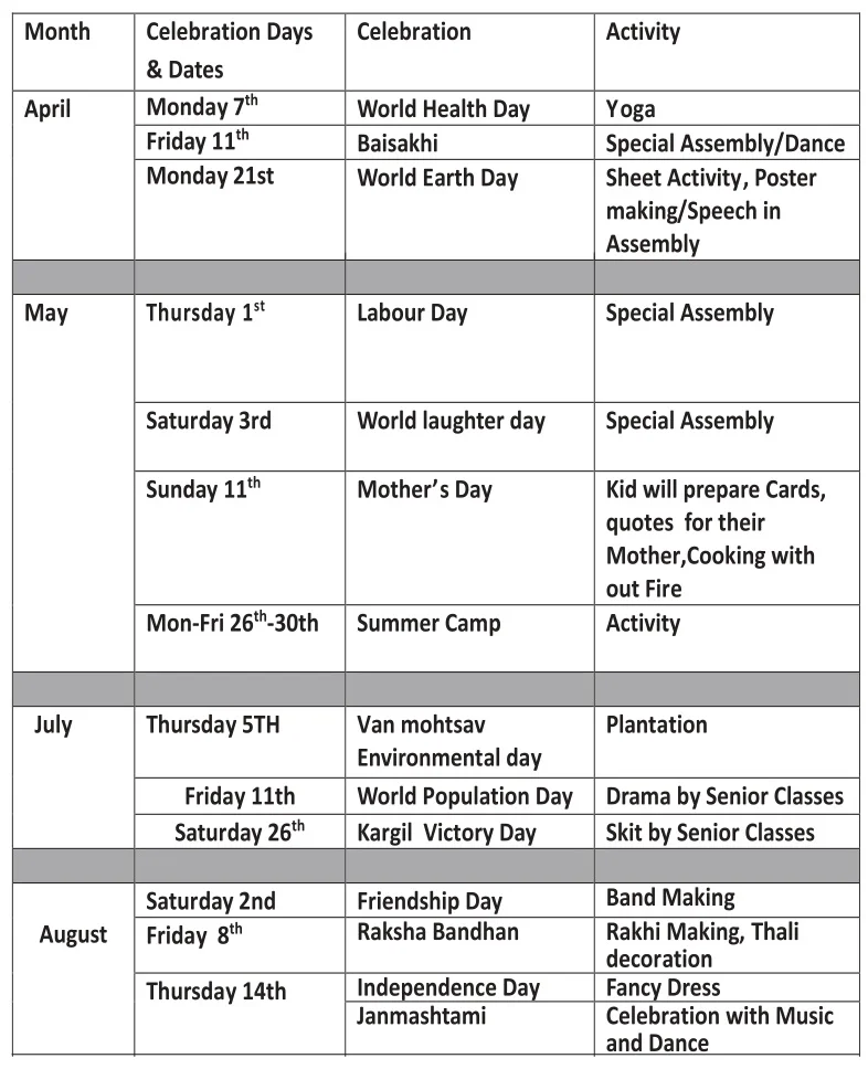 Celebrations Days and Dates